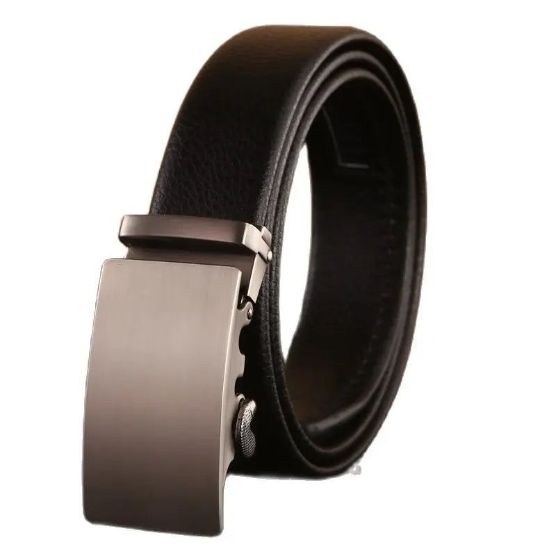 Men’s formal belt made from leather, fabric, and PU materials with an automatic buckle. Belt width 3.5cm, buckle dimensions 8.5 × 4cm, and weight 120g. Available in multiple lengths up to 160–180cm. Classic solid design suitable for office, business, and formal occasions.