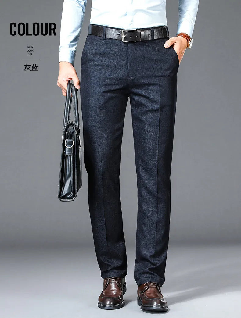 Men’s formal trousers with a high waist and straight-leg design for a classic business style. Made from durable polyester with flat front and zipper fly closure. Suitable for office, business meetings, and formal occasions. Comfortable and versatile, available in multiple sizes for all-season wear.
